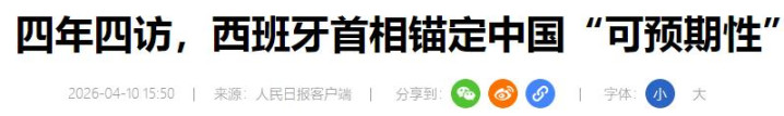 2026年4月11日,西班牙首相桑切斯再次踏上中国土地。这已是他四年内的第四次访华,创下欧洲领导人访华频率的新高。桑切斯曾公开表示:“中国很重要,希望每年都访问中国。”